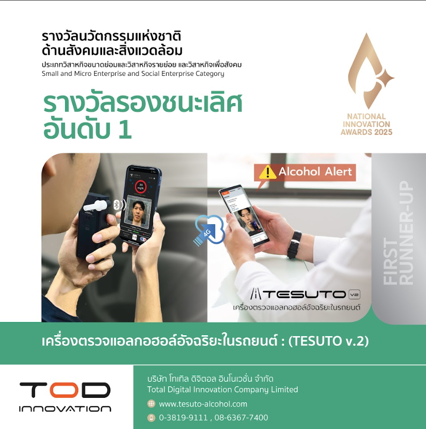 TESUTO v2 ระบบตรวจแอลกอฮอล์อัจฉริยะในรถยนต์ ที่ยกระดับความปลอดภัยเชิงรุก ในการป้องกันอุบัติเหตุจากการเมาแล้วขับ พร้อมกับป้องกันการทุจริตในการเป่า ไม่ว่าจะเป่าสั้น เป่าเบา หรือ ให้คนอื่นเป่าแทน และมีการแจ้งเตือนผลไปยังผู้ควบคุมดูแลแบบเรียลไทม์ผ่านคลาวด์และ Mobile Application เป็นระบบที่ใช้งานง่ายเพียง 3 ขั้นตอน คือ เปิด Application กดปุ่ม Start บนเครื่อง และเป่า3วินาที ระบบจะประมวลผลและส่งข้อมูลขึ้นคลาวด์และแจ้งเตือนส่วนกลางทันที ความแม่นยำสูงแม้ค่าแอลกอฮอล์ระดับต่ำพร้อมผลการสอบเทียบ นอกจากนี้ยังสามารถเลือกติดตั้งระบบตัดการสตาร์ทรถอัตโนมัติได้ หากตรวจพบแอลกอฮอล์เกิน 0% ระบบนี้เหมาะสำหรับธุรกิจขนส่งโลจิสติกส์ หรือ รถโดยสาร และให้บริการในรูปแบบค่าบริการรายเดือน